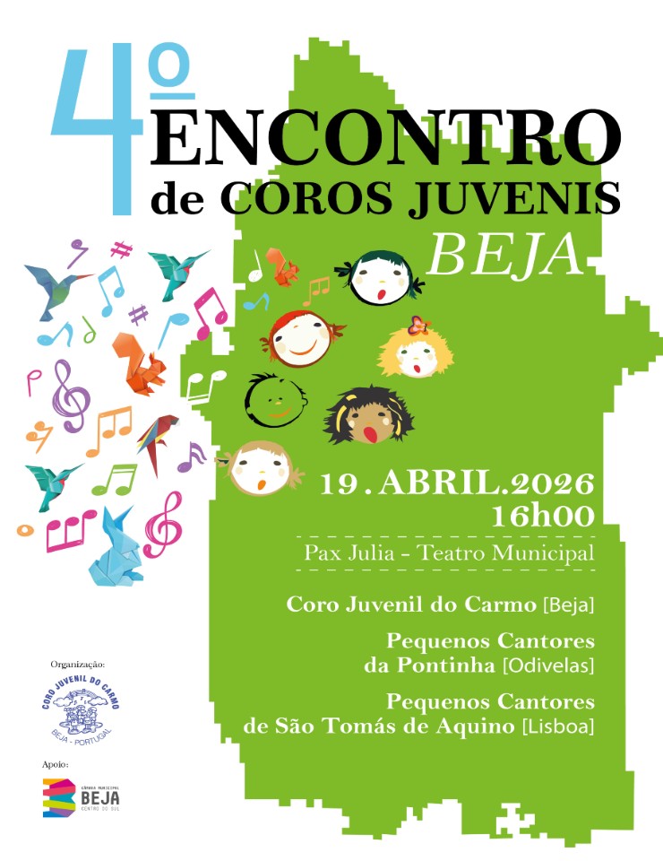 O 4.º Encontro de Coros Juvenis de Beja, promovido pelo Coro Juvenil do Carmo, reúne jovens vozes num momento de partilha musical e intercâmbio cultural. Com mais de 25 anos de atividade, o Coro Juvenil do Carmo convida dois agrupamentos juvenis de referência — os Pequenos Cantores da Pontinha (Odivelas) e os Pequenos Cantores de São Tomás de Aquino (Lisboa) — para um espetáculo que celebra a música coral interpretada por crianças e jovens.